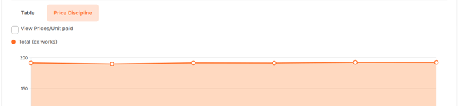 To review the trend of the entire product, click on 'Price Discipline'. If you have entered your own historical buying prices before, you can click on 'View Prices/Unit paid'. The line will pop up in the graph so you can visually compare the trends.