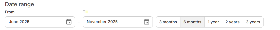 The first step to make the desired indices visible in the WTP application is to select the desired 'Date Range'.