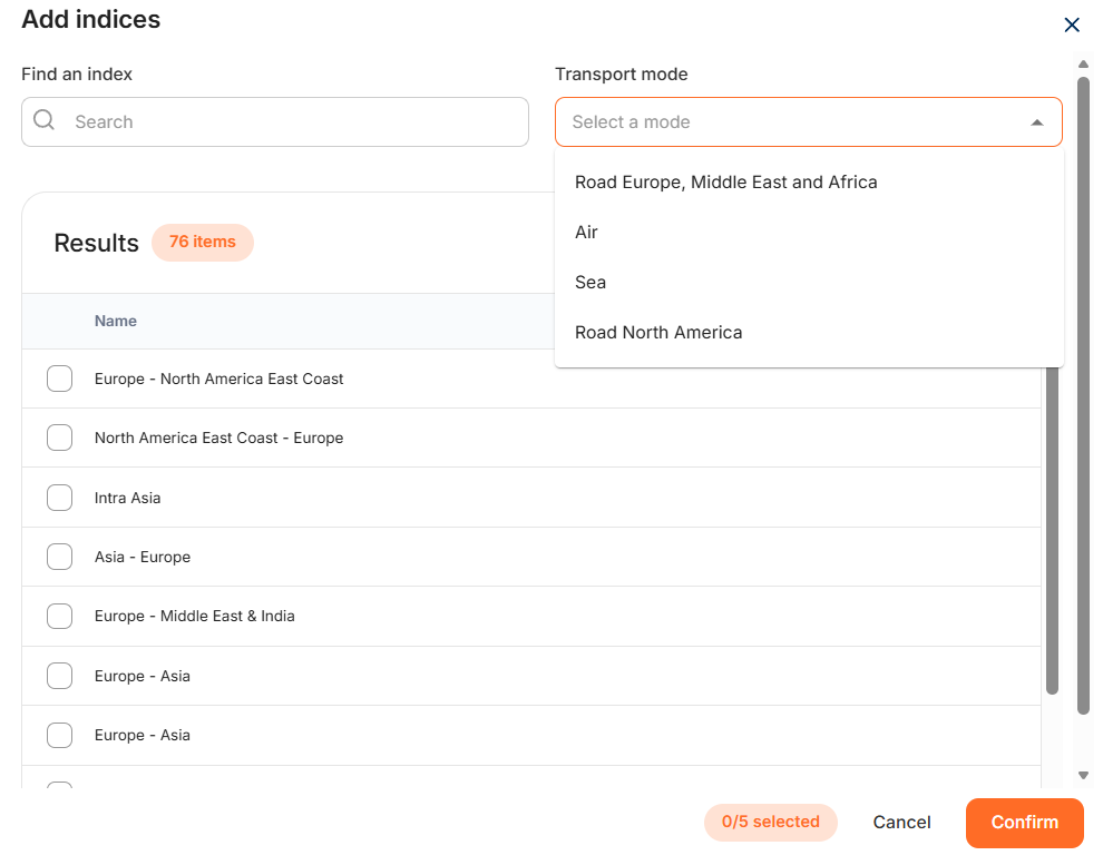 Use the search bar to find the correct route(s) if necessary. Confirm your choice by clicking 'Confirm' at the bottom right.