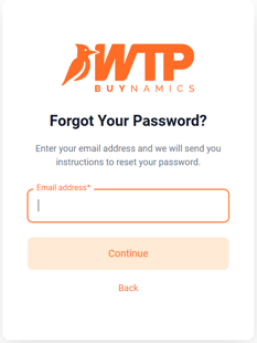If you have forgotten your password, you can click the 'Forgot your password' button to reset your password. Enter your username in the field and then click 'Continue'. An e-mail will be sent to the e-mail address used to register the WTP account. This e-mail contains the reset instructions.